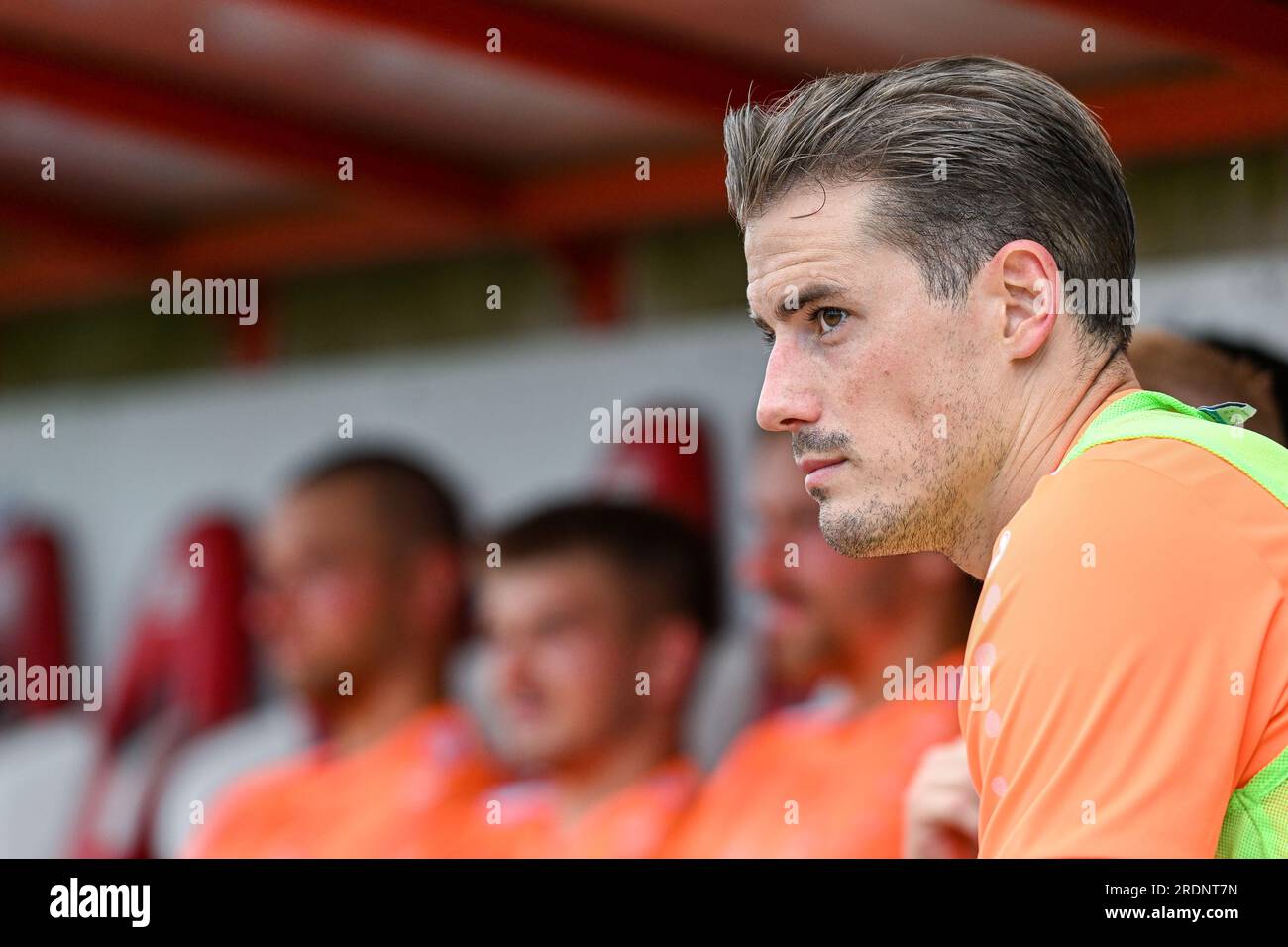 Mouscron, Belgium. 22nd July, 2023. Sven Braken (14) of KMSK